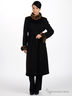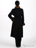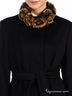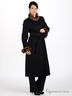 Детали: воротник стойка на кнопке, застегивается на пуговицы, спереди два прорезных кармана, ворот и манжеты украшены декоративными меховыми цветами, талия подчеркнута поясом, сзади разрез шлица