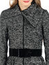 Детали: отложной воротник стойка, застегивается на молнию, спереди 2 прорезных кармана на молнии, талия подчеркнута лаковым широким поясом