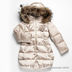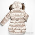 Зимнее пуховое пальто с капюшоном на кнопках и кулиске. Отстегивающийся мех, высокий воротник стойка, застегивается на молнию, внутри карман на клапане, спереди 2 прорезных кармана на молнии, талия присборена на резинку.