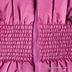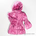 Пальто для девочки приталенное на синтепоне. Сзади и по краю капюшона резинка. Застегивается на молнию. На плечах, талии, локтях и с внутренней стороны низа широкая многорядная резинка. Манжеты закрыты рукавом-фонариком. Два передних кармана на молнии, внутри один небольшой на липучке. Внутри на уровне пояса расположена утяжка.