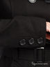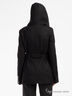 Пальто однотонного цвета с длинными рукавами и двубортной застежкой на пуговицу. Модель дополнена широким поясом на талии.