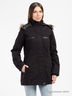 Куртка с застежкой на молнию и кнопки. Модель имеет капюшон, декорированный мехом. На груди два кармана на молнии. Так же по бокам два втачных кармана.
