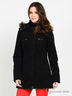 Демисезонное пальто выполнено из плотной хлопковой ткани с синтепоновым утеплителем. Модель приталенного силуэта с воротом-стойкой и со съемным капюшоном, декорированным съемным искусственным мехом. Застегивается на молнию и на клапан с кнопками. Спереди четыре кармана. Длинный прямой рукав дополнен манжетой из кашкорсе и декорирован молнией. Стильный вариант на каждый день.