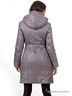 Демисезонное пальто из глянцевой фактурной плащевки. Капюшон, широкий отложной воротник на кулиске, застегивается на молнию. Спереди 2 втачных кармана, талия на поясе.