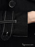 Детали: застежка на пуговицы, отложной воротник, длинный прямой рукав и плечи декорированы хлястиками на пуговицах, два кармана
