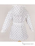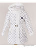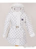 Это пальто – настоящее произведение искусства! В таком наряде ваша дочка будет настоящей звездой. Белоснежная ткань с ненавязчивым цветочным принтом в виде ромбиков смотрится ярко и безупречно стильно. Края рукавов и капюшона украшены оборками. Комплект дополнен маленькой дамской сумочкой. Ваша принцесса готова покорить сердца окружающих!