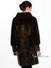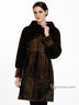 Элегантное пальто из меха норки и каракуля. Застегивается на клипсы. Декорировано отстегивающейся брошью с цветком из меха и перьями.