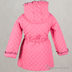 Куртка приталенного силуэта застегивается на молнию и кнопки. Два передних кармана. Декоративная прострочка. Пояс в комплекте. Манжеты и капюшон украшены оборками.
