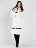 Отличное пальто приталенного силуэта с воротом-шалькой и длинным рукавом на резинке. Выполнено из гладкого джордана с тонкой шелковистой подкладкой и утеплителем - синтепон. Двойная застежка на молнию и клапан с кнопками, в шлевки продет пояс-резинка с металлической пряжкой. Декорировано кружевными нашивками контрастного цвета. В этом пальто Вы не останетесь без внимания.