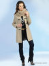 Актуальное решение конструкции: прямой силуэт, аккуратный объем, цельновыкроенный рукав. Разбивка плоскостей деталей конструктивными и декоративными линиями для создания горизонтального ритма — популярный композиционный прием оформления моделей.