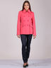 Яркий цвет задает модели задорное настроение, не оставляя и намека от агрессивности стиля милитари. Куртка-жакет классического дизайна: двубортное решение, отложной воротник на стойке, концы которого фиксируются с помощью металлического крючка, кокетки, погоны. Боковые карманы с клапаном. Швы и края деталей декорированы двойной настрочкой. Фурнитура подобрана в цвет ткани верха.