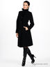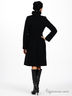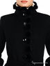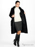 Классическое пальто из плотного мягкого материала с шелковистой подкладкой. Приталенный силуэт, воротник стойка, застегивается на пуговицы. Талия подчеркнута поясом. Сзади шлица, пальто оригинально украшено норковыми помпонами.