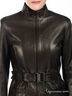 Детали: застегивается на молнию; два втачных кармана на молнии; ворот-стойка; дополнено кожаным поясом