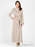 Детали: отложной ворот с лацканами, длинный рукав, двубортная модель с застежкой на пуговицы, два передних кармана, по боковым швам пришиты шлевки, пояс в комплекте