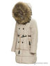 Верх – полиэстер - 100%, Подкладка - полиэстер - 100%, Наполнитель - Холлофайбер+Верблюжья шерсть, Опушка - натуральный мех ЕНОТА. Капюшон и мех отстегиваются. Рукава пальто с отворотом для регулировки длины и с трикотажными манжетами внутри.