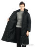Детали: застежка на молнию и кнопки, капюшон на кулиске с отстегивающимся мехом отстегивается, два кармана на молнии, один внутренний карман на пуговице, изделие дополнено поясом