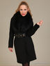 Женственное пальто приталенного силуэта зауженного от бедер имеет мягкую линию плеч за счет рукавов покроя "реглан". Английский воротник дополнен пристегивающимся меховым воротником из енота, что делает модель не только более интересной, но и практичной. Дополнительные аксессуары на фото в комплект не входят.