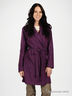 Теплое пальто из мягкого, ластящегося материала. Широкие лацканы, переходящие в воротник. Пояс на уровне талии. Два накладных кармана. Ворсовая подкладка.
