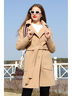 Короткое молодежное пальто длиной до колен. Прямого силуэта. Большой английский воротник. Заниженная пройма. Двубортное с застежкой на пуговицы с поясом. Длина рукава: 74 см от горловины. Длина изделия: 94 см.