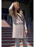 Трендовое пальто-пиджак из мягкой шерстяной ткани с английским воротником и V-образным вырезом, двубортное, на пуговицах, втачной рукав, по низу которого отлетная шлица. По среднему шву спинки-шлица. Горизонтальные карманы в рамку с клапаном. Цвет пальто на фотографиях может незначительно отличаться от оригинального. Длина рукава: 61-63 см от горловины. Длина изделия: 86-88 см.