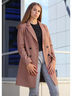 Трендовое пальто-пиджак из мягкой шерстяной ткани с английским воротником и V-образным вырезом, двубортное, на пуговицах, втачной рукав, по низу которого отлетная шлица. По среднему шву спинки-шлица. Горизонтальные карманы в рамку с клапаном. Цвет пальто на фотографиях может незначительно отличаться от оригинального. Длина рукава: 61-63 см от горловины. Длина изделия: 86-88 см.