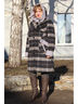 Женское пальто. силуэта полутрапеция. втачной классический рукав с манжетом. имитация отлетной кокетки. Капюшон не отстегивается. Отделка из более светлой ткани. Центральная застежка на пуговицы. Длина рукава: 64 см. Длина изделия: 92 см.
