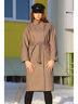 Женское пальто прямого силуэта. Воротник стойка. Застежка от верха на кнопки-магниты со смещением в верхней части. Рукав летучая мышь с отрезной деталью по низу. Боковой шов в нижней части переходит на перед. Карман настрочная листочка. По талии завязывающийся пояс. Длина рукава: 75 см от горловины. Длина изделия: 100 см.