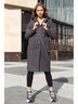 Рубашечный рукав со спущенной линией плеча. Английский воротник, накладные карманы. Центральная застежка на 4 пуговицы. Длина чуть ниже колена, пояс из основной ткани. Цвет пальто на фотографиях может незначительно отличаться от оригинального. Длина рукава: 74 см от горловины. Длина изделия: 100 см.