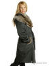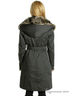 Детали: широкий отложной меховой воротник с лацканами, капюшон, длинные рукава, застегивается на пуговицы, спереди 2 прорезных кармана, талия подчеркнута поясом