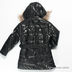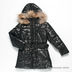 Слегка расклешенное пальто с капюшоном застегивается на молнию и кнопки. Капюшон отстегивается. В край капюшона вставлена регулирующая резинка. Два передних кармана, два нагрудных кармана. Ширина манжет регулируется липучкой. По боковым швам пришиты шлевки, вставлен ремень. Декоративная нашивка с пайетками на рукаве. Синтетический утеплитель.