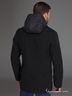 Двубортное укороченное полупальто со съемным капюшоном из кашемира и плащевки. Воротник отложной сложной конструкции. Прорезные карманы украшены плащевкой, рельефные строчки, 1 шлица, стеганная подкладка, утеплитель-холлофайбер. Длина на пиджак.