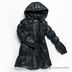 Детали: капюшон не отстегивается, мех нворот-стойка, застежка на молнию и кнопки, два передних кармана, манжеты с резинкой, декоративные сборки и нашивка, на уровне талии фигурная резинка