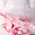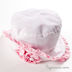 Прекрасная шапочка выполнена из плотной хлопковой ткани. По краям отделка рюшей, украшены цветками, изящная атласная лента надевается через подбородок.