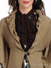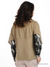 Детали: застежка на одну пуговицу, V-образный вырез горловины с отложным воротником со сборкой, рукав короткий - летучая мышь.