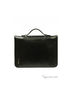 Строгая папка для бумаг с небольшим открытым отделением с лицевой стороны. Основное отделение раскрывается целиком, как книжка. Внутри имеются кольца для бумаг или файлов, отдельный отсек для бумаг, а также различного типа карманы для карточек, авторучек и различных аксессуаров. Жесткая форма, подкладка - черный нейлон, фурнитура - матовое серебро. Короткая жесткая одинарная ручка сбоку.
