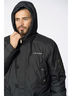 Детали: капюшон, воротник-стойка, длинный рукав, спереди застежка на молнию и пуговицы, по бокам и нагрудные карманы