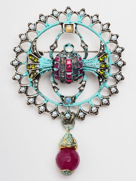 Брошь PATRICIA BRUNI, цвет синий, красный, бронзовый
