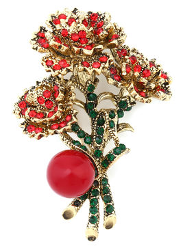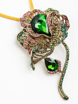 Брошь PATRICIA BRUNI, цвет розовый, зеленый, бронзовый