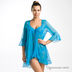 Пеньюар из эластичной сетки. Рукава 3/4. Завязывается спереди. Край рукавов и низ изделия оформлены штрокими оборками. На полочке кружевные нашивки в виде бабочек.