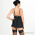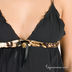 Элегантный эротический пеньюар на тонких регулируемых бретелях. Пеньюар имеет V-образный вырез горловины, украшенный бантиком из атласной ленты. Лиф, отрезной по линии талии, декорирован аккуратными рюшами, а пояс на резинке и бретели выполнены из контрастного материала с принтом, имитирующим леопарда. Роскошный наряд для спальни!