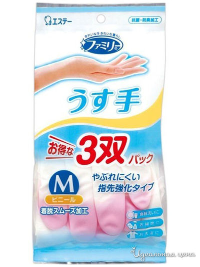 Перчатки для бытовых и хозяйственных нужд, размер M, 3 пары, ST FAMILY, цвет розовый