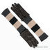 Зимние перчатки выполнены из натуральной кожи ягненка черного цвета. Декоративная прострочка белыми нитками. Манжета - шерстяной трикотаж, комбинация светло-бежевого, серого и черных цветов. Подкладка 100% шерсть. Разрез на ладонной стороне манжеты. Длина манжеты от нижней точки большого пальца до края перчаток - 26 см. Пальцы - средние