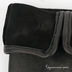 Перчатки выполнены из кожи ягнёнка черного цвета. Без подкладки. Декоративные элементы - на лицевой стороне разрез и кнопка, обтянутая кожей, переплетение из кожаных полосочек. Длина манжеты от нижней точки большого пальца до края перчаток - 5 см. Длина пальцев - средняя