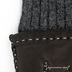 Зимние перчатки выполнены из натуральной кожи ягненка черного цвета. Декоративная прострочка белыми нитками. Манжета - шерстяной трикотаж, комбинация светло-бежевого, серого и черных цветов. Подкладка 100% шерсть. Разрез на ладонной стороне манжеты. Длина манжеты от нижней точки большого пальца до края перчаток - 26 см. Пальцы - средние