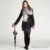 Перчатки выполнены из кожи ягнёнка черного цвета. Отделка - два декоративных шва "метеор": вдоль указательного пальца и мизинца. Нижний край перчатки окантован. Резинка на ладонной стороне. Длина манжеты от нижней точки большого пальца до края перчаток - 7,5 см.