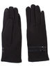 Женские текстильные черные перчатки Flioraj, украшенные полосками из экокожи с пуговками. С подкладкой из флиса. Великолепно сидят на руке, отлично дополнят любой образ. Перчатки разработаны специально для работы с сенсорными дисплеями смартфонов, планшетов, позволяя использовать устройство в холодное время года не снимая их, сохраняя руки в тепле и комфорте.