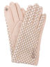 Женские текстильные светло- бежевые перчатки Flioraj, украшенные пуговками, мягкие и эластичные, с подкладкой из флиса. Клетчатый верх выполнен из шерсти и мохера. Великолепно сидят на руке, отлично дополнят любой образ. Перчатки разработаны специально для работы с сенсорными дисплеями смартфонов, планшетов, позволяя использовать устройство в холодное время года не снимая их, сохраняя руки в тепле и комфорте.