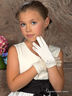 Атласные перчатки для девочек. Модель украшена великолепным цветком из тончайшей сетки, бусинами-жемчужинами и тесьмой со стразами.