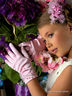 Атласные перчатки для девочек. Модель украшена великолепным цветком из тончайшей сетки, бусинами-жемчужинами и тесьмой со стразами.