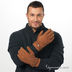 Элегантные мужские перчатки выполненные из натуральной замши с меховым подкладом. Запястье присобрано на резинку и регулируется по ширине ремешком с кнопкой.